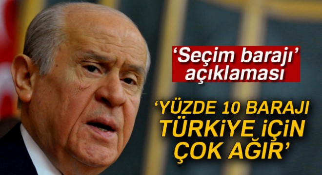 Bahçeli, konuşmasında şunları kaydetti: "Yüzde 10 barajı Türkiye'de çok ağır bir baraj. (Geçmiş dönemler) O günkü uygulamalarda bölücü unsurlar olarak TBMM'de temsil imkanı baraj engeliyle aşamayacaklarını anlayanlar, kendilerini bir parti disiplini içerisinde hareket ettirerek bir yapılanma sağladılar. Şimdi, Türkiye'de iki şeye dikkat etmek gerekiyor, artık bu zorlamalarla dayatmalarla birilerini öldürerek kendini yaşatma yerine hep beraber nasıl yaşarız konusunda bir uzlaşmaya varacak çalışma yapmak lazım. Yüzde 5 mi olur, yüzde 7 mi olur, yoksa yüzde 10'da mı kalır, bunları görmek lazım. Bu konuyu yaparken bir başka partiyi, yok parti diyerek ezerek kendine yol çizmeye çalıştığında da onun bir anlamı olmadığı görülür. Bütün bunlardan ders çıkarmak lazım."