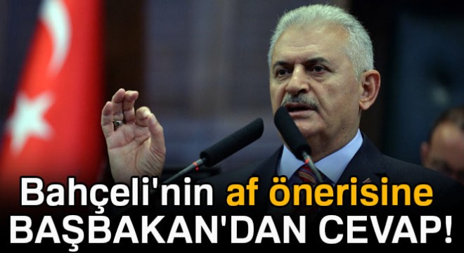 MHP lideri Devlet Bahçeli'nin af önerisini değerlendiren Başbakan Binali Yıldırım, "Terör örgütlerine, onu destekleyenlere karşı bugünlerde terör muhitleri bir çalışma içine girdiler. Ona bir tepki olarak öyle bir konuyu gündeme getirmiş olabilir diye düşünüyorum. ama hükümet olarak bizim gündemimizde teröristlere asla ve asla af söz konusu değildir" dedi.