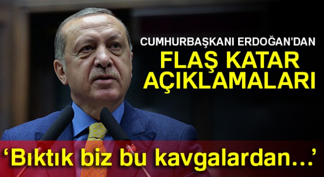 Cumhurbaşkanı Erdoğan, Körfez ülkelerinde yaşanan krize değinerek, "Bıktık biz bu kavgalardan, Müslümanın Müslümanı kırmasından bıktık. Katar'ın teröre destek verdiğine ben şahit olmadım. Biz Katar'a her türlü desteği vermeye devam edeceğiz." dedi.