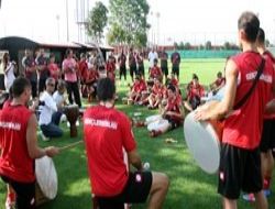 Kırmızı-siyahlı takımın futbolcuları, son antrenmanında “davul, zil” gibi vurmalı enstrümanlarla ritm tuttu.