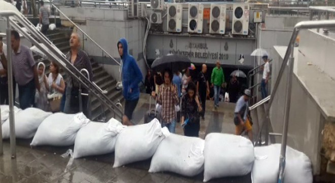 Meteoroloji Genel Müdürlüğü'nün kuvvetli yağış uyarısının ardından yağmur İstanbul’da etkisini göstermeye başlarken Eminönü ve Sirkeci'de alt geçitlerde alınan önlem dikkat çekti.